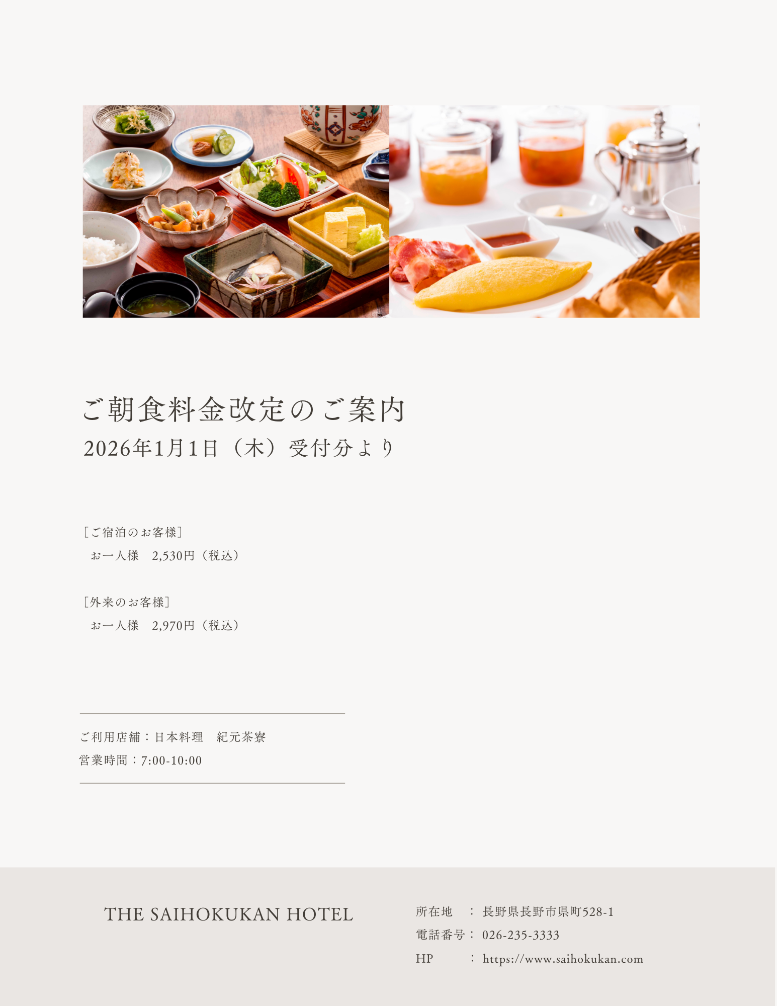 ご朝食料金改定のご案内